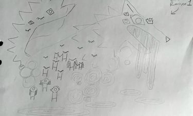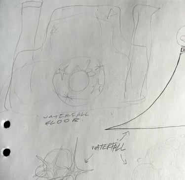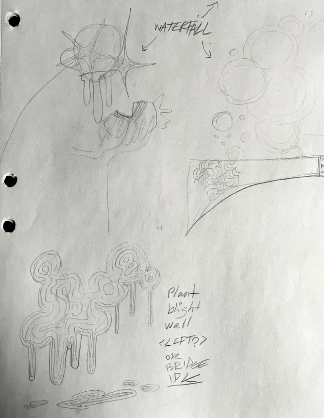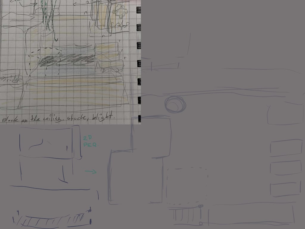 to the left are sketches to communicate and design levels before they were built to save time and resources.