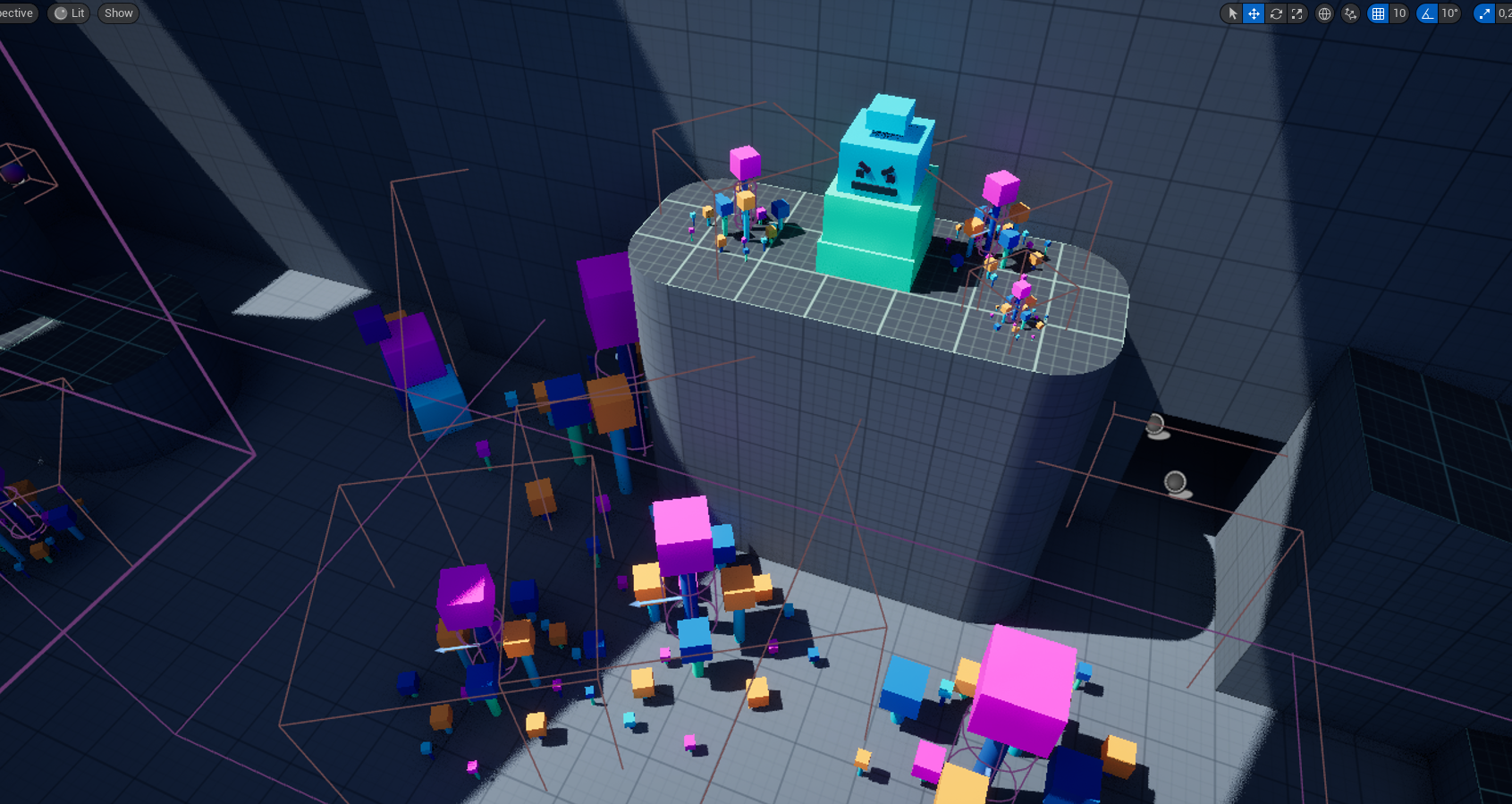 while playtesting earlier stages of the level, we managed to create an environment that made you feel lost & paranoid, even if enemy prototypes hadn't been added yet.