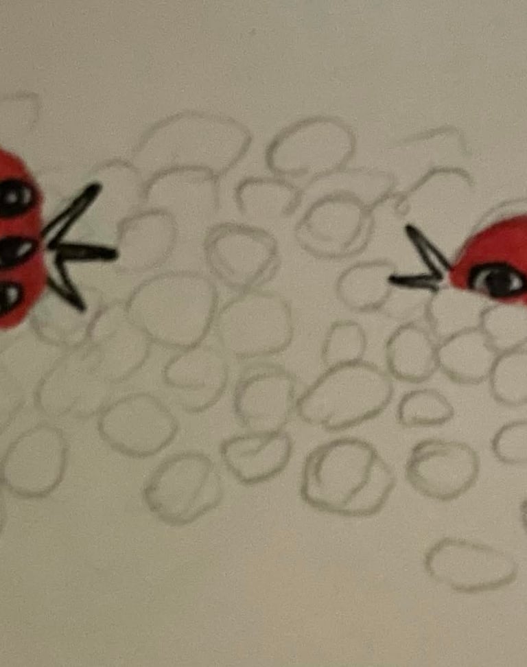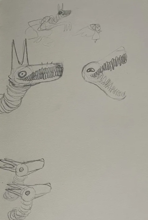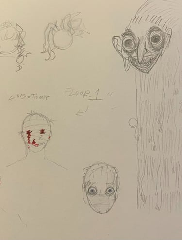 lastly I drew an image meant to showcase an abstract depiction of people that are dead, thus the closed eyes.